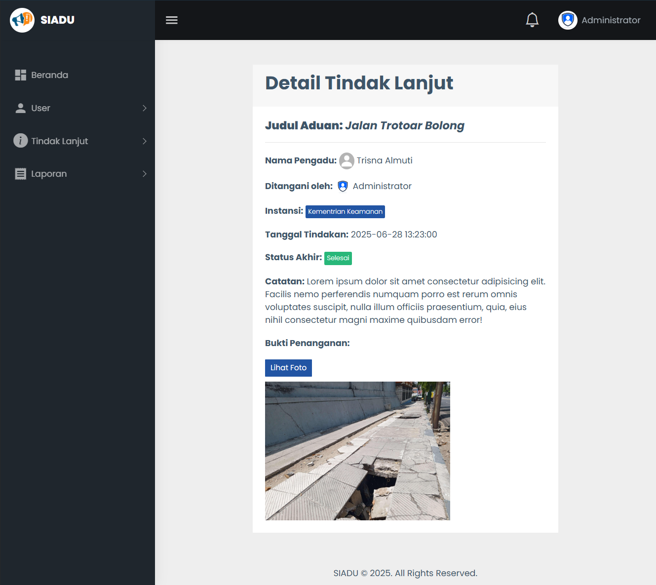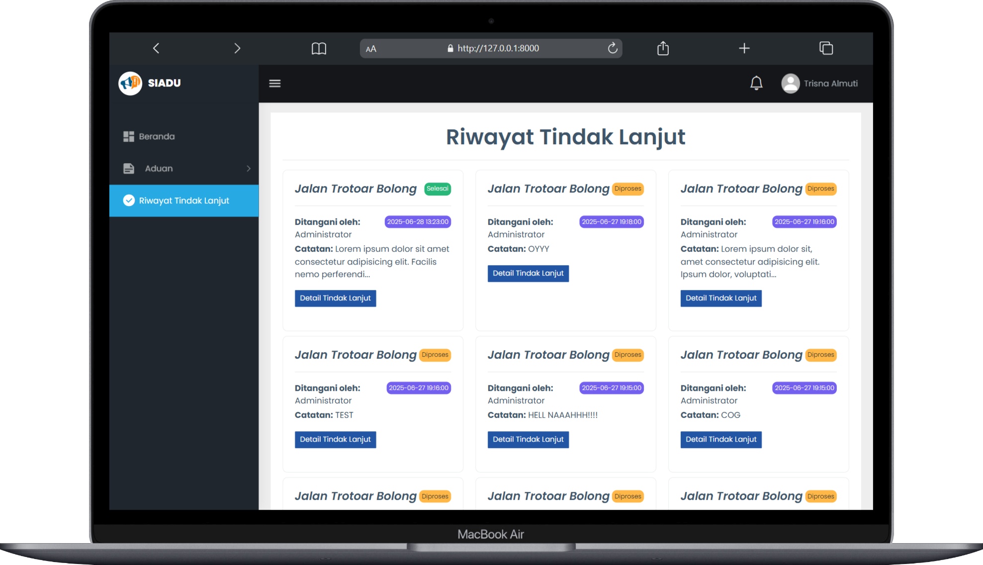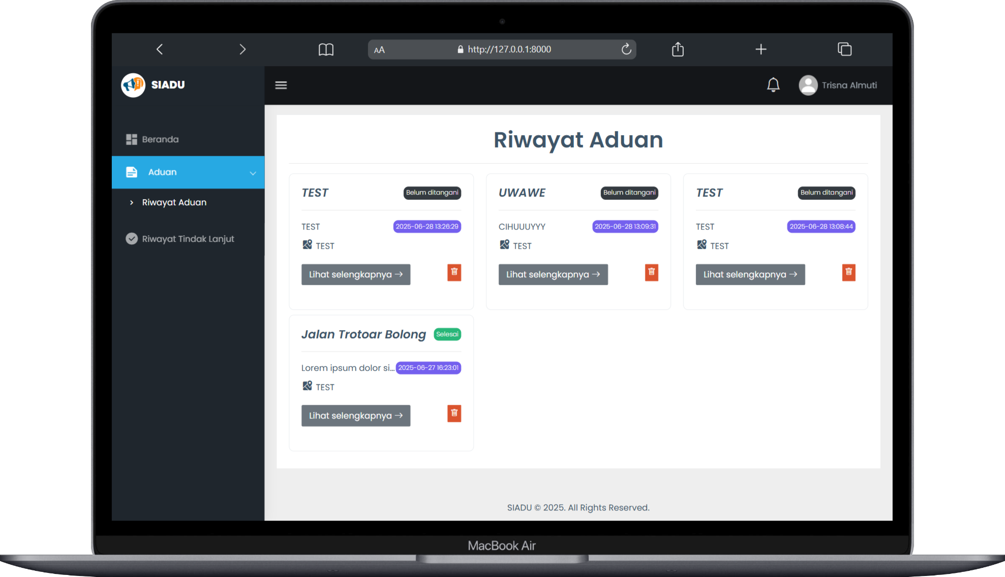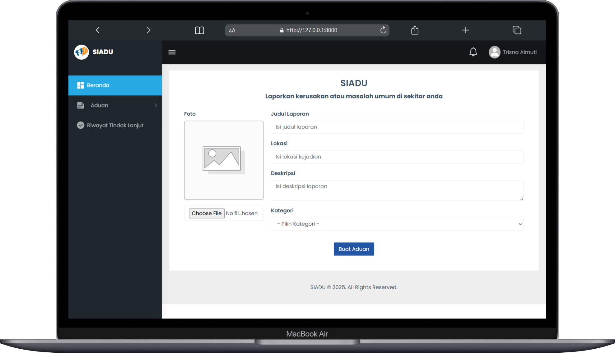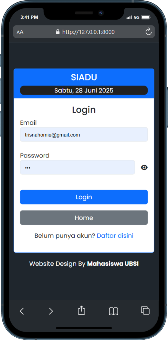 SIADU was developed as evidence of the report on the results of the IT Bootcamp activities for Even Semester of the 2025/2026 Academic Year at the Faculty of Engineering and Informatics, Bina Sarana Informatika University, Jakarta.